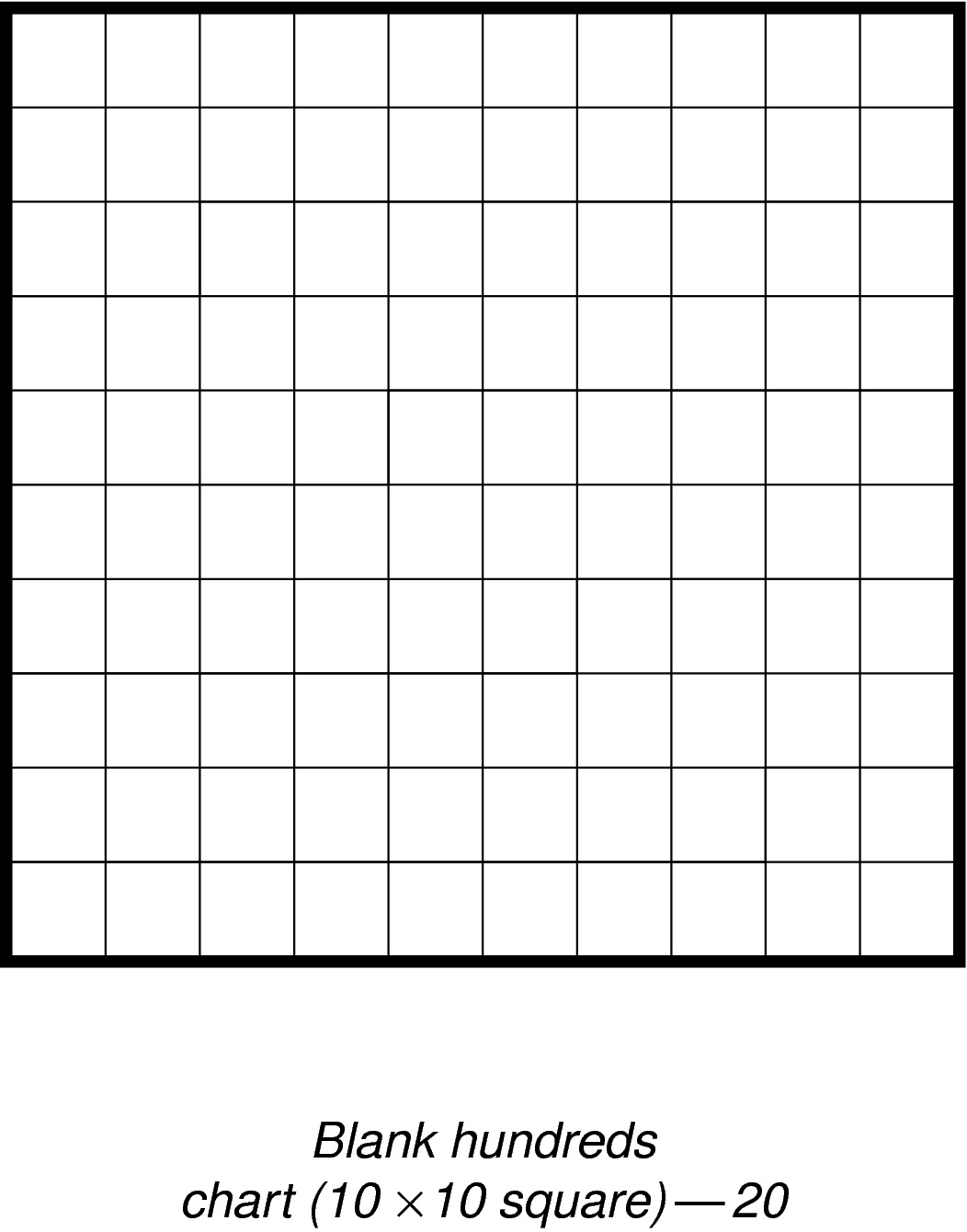 I edited my hundreds chart file to make this blank hundreds chart printable. Give each student a blank hundred chart.
